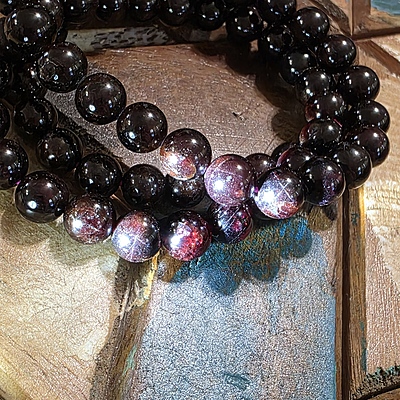 Star garnet is prized by collectors for its deep, rich hues—ranging from dark reddish-brown to almost black—and its ability to reveal a delicate, four- or six-rayed star under the right lighting conditions. When you shine a flashlight or direct light across the surface, you’ll notice fine, shimmering lines that cross to form a star, adding a touch of wonder and individuality to each bracelet. The effect may be subtle in ambient light, but with a little attention, these natural asterisms offer a unique visual experience. Their deep red hues are perfect for color therapy applications, too.
