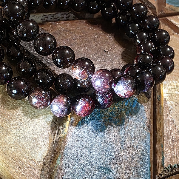 Discover the subtle magic of our star garnet bracelets, a unique addition to any gemstone jewelry collection. Each star garnet bracelet is crafted from genuine garnet beads that display the rare and fascinating phenomenon of asterism—a star-like pattern that appears on the surface of the stone when illuminated by a focused light, such as a flashlight. While these bracelets may not be considered top gem quality, each bead still reveals fine, attractive asterisms that make them truly special.