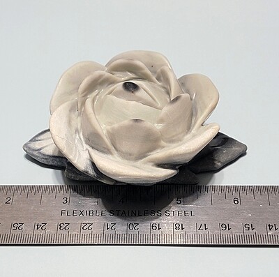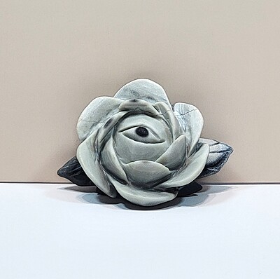 Our taiji stone rose carving is perfect for décor and gemstone collections. With the craftsmanship and amazing detail that went into this carving, this piece makes a wonderful gift. The natural pattern of the stone gives it the impression that there is an eye in the center of the flower. We only have one of these beautiful roses. Don't miss out!