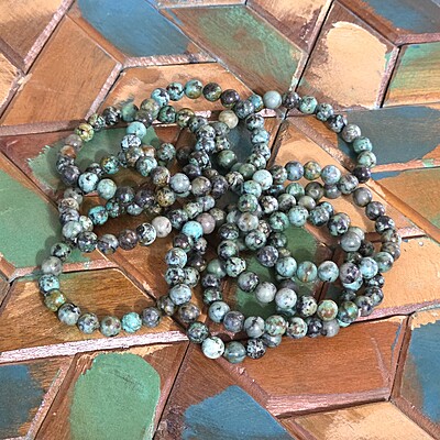 Take a look at these fantastic, polished turquoise bracelets with vibrant blue-green beads and natural matrix patterns. With a comfortable stretch design and timeless style, you won't want to miss out on these!