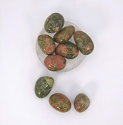 Elevate your space with the stunning beauty of unakite tumbles. Each stone boasts a unique blend of earthy greens and vibrant pink-orange tones, creating a captivating display. Perfect for collectors, home décor enthusiasts, or anyone seeking a touch of natural elegance.