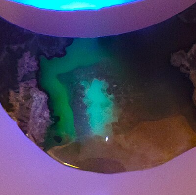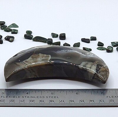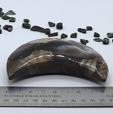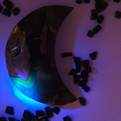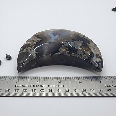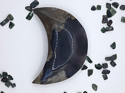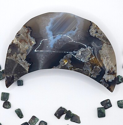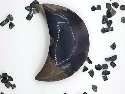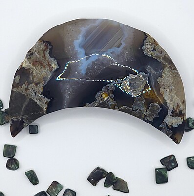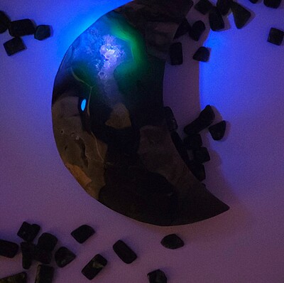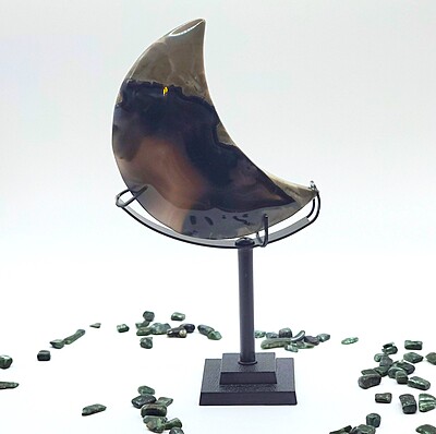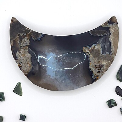Check out these beautiful volcano agate moons. They boast UV reactivity, while maintaining a sleek, stylish look in normal lighting conditions. Don't miss out on these fabulous pieces!