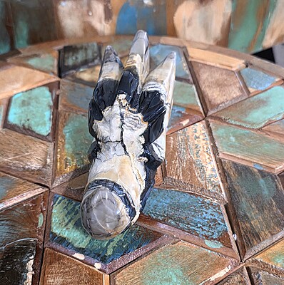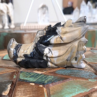 Our volcano agate dragon head is a spectacular piece. It was specifically chosen for its lovely patterns. Don't miss out on this unique piece!