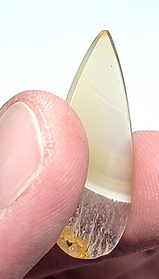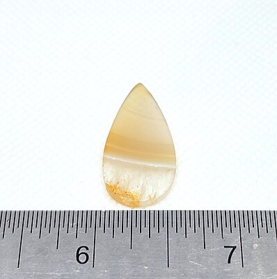 This yellow agate cabochon is a unique beauty. It is thin-cut and has nice clarity. Take a look at this lovely piece!