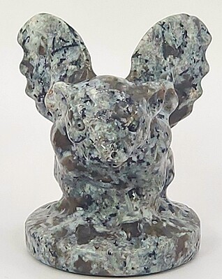 These yooperlite gargoyles pull triple duty with their beauty and lore! During the day, they share the beauty of gray, black, and red crystal formations. Yet, under the glow of a UV light, those red crystal regions light up a vibrant orange color. Also, the folklore surrounding gargoyles speaks of them as protectors of the buildings they rest upon. They are the perfect piece for a collector and they also work well with many styles of décor. We only have two of these handsome carvings. Get them before they're gone!