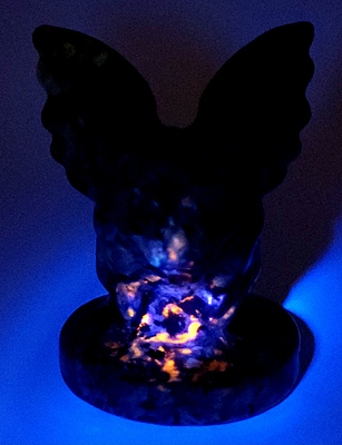Yooperlite gargoyles are the perfect addition to your very own castle—whatever or wherever that may be. Sleek and regal by day, these carvings glow orange under UV light. Gargoyles are symbolic protectors. Bring one to your living space today!